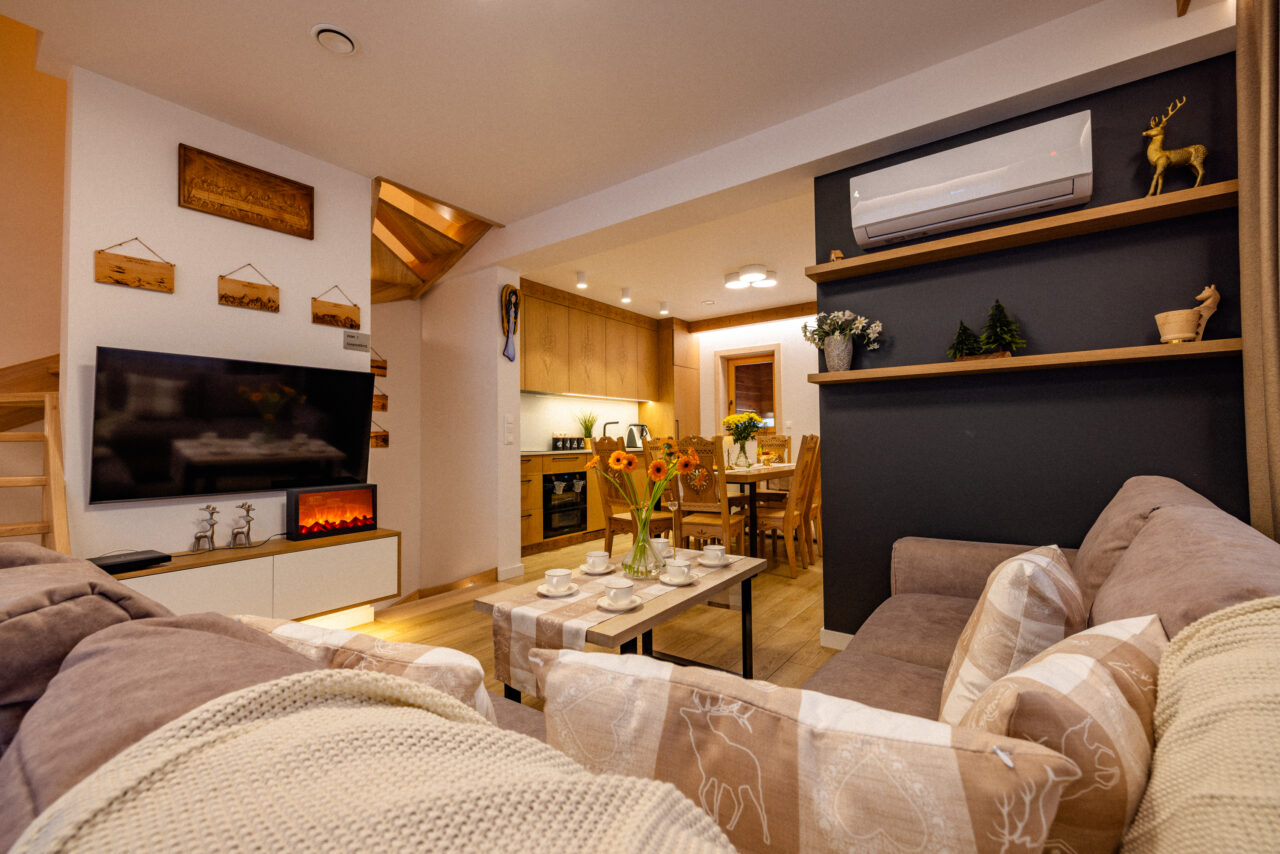 Rogate Chaty w Kościelisku oferują bezpłatne WiFi, klimatyzację, ogród oraz taras z częścią wypoczynkową oraz częścią zabaw dla dzieci.